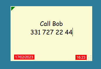 Note: When a sticky appears in the center of the screen having reached the preset time, the text box is temporarily disabled (the cursor does not blink). If it should be active, in fact, it "would receive" input from the keyboard and if you were writing something... you would write into the sticky .