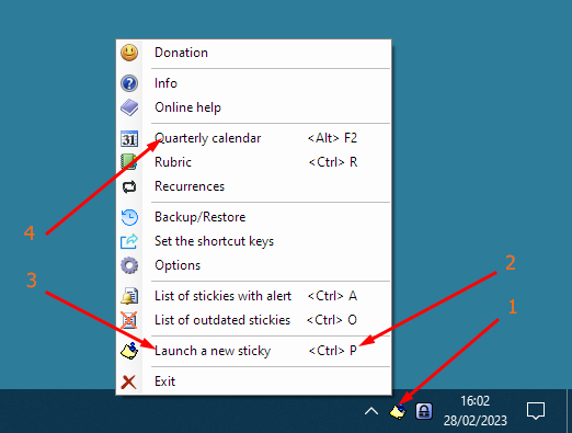 - By the menu item "Launch a new sticky "