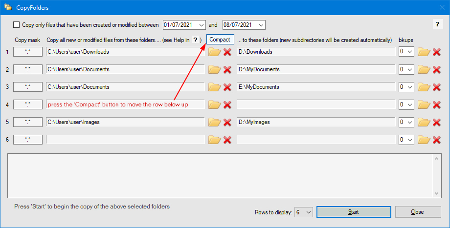 May be sometimes you want to delete the paths inserted in a row (you can do this by the two X buttons near the folder icon). Or may be you have simply left an empty row, filling data in the below one.